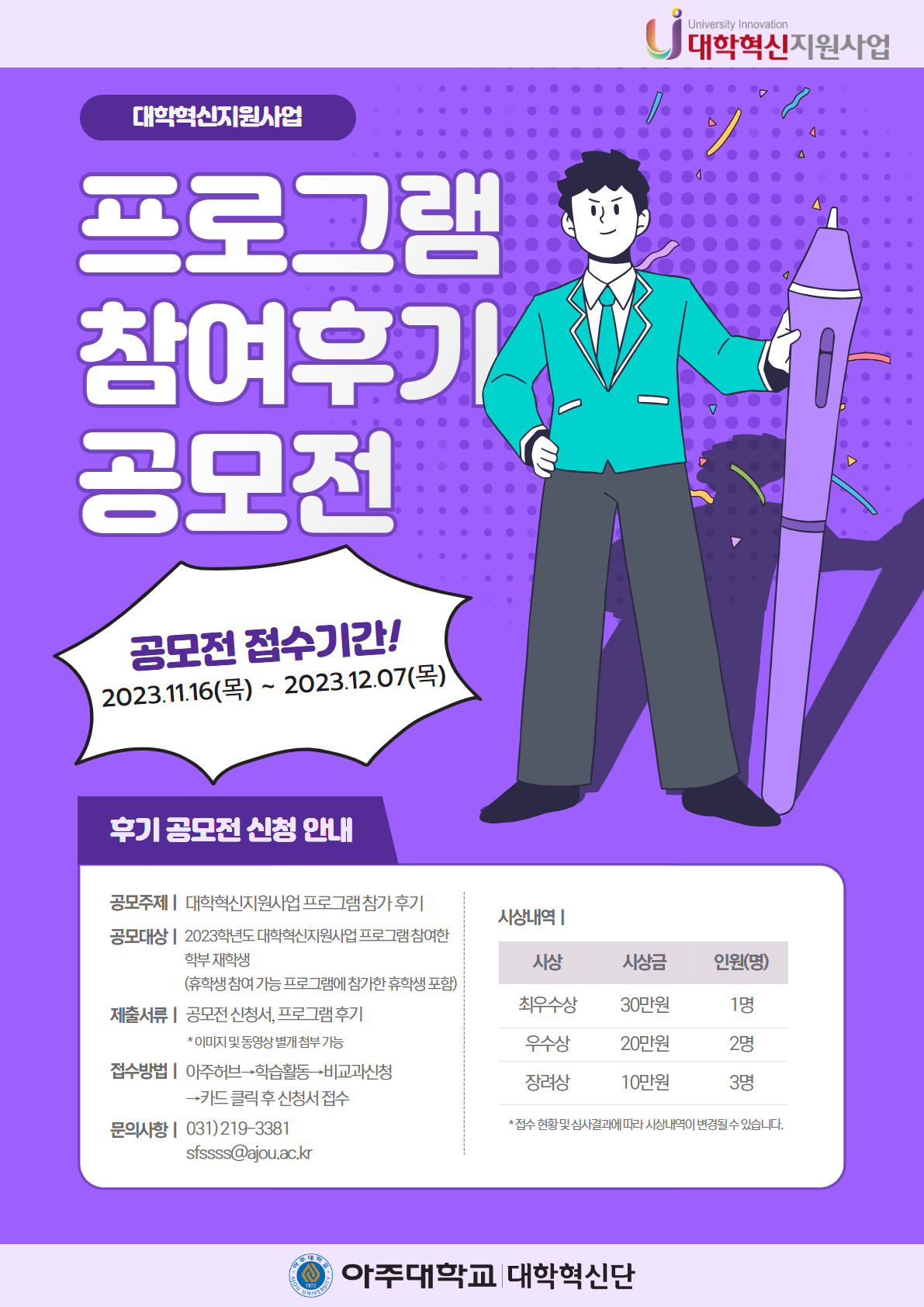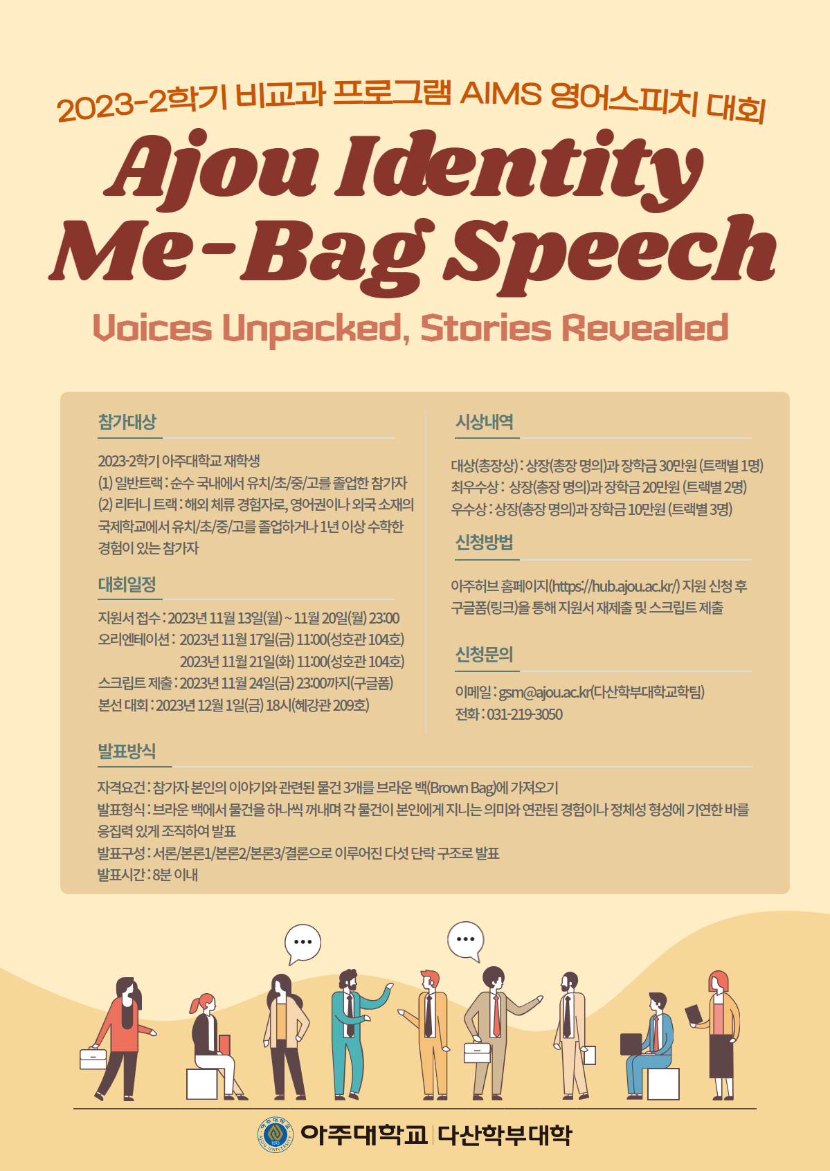 [다산학부대학] 2023-2학기 영어 스피치 대회 Ajou Identity Me-Bag Speech(AIMS) 안내 (신청: ~11.20.(월))