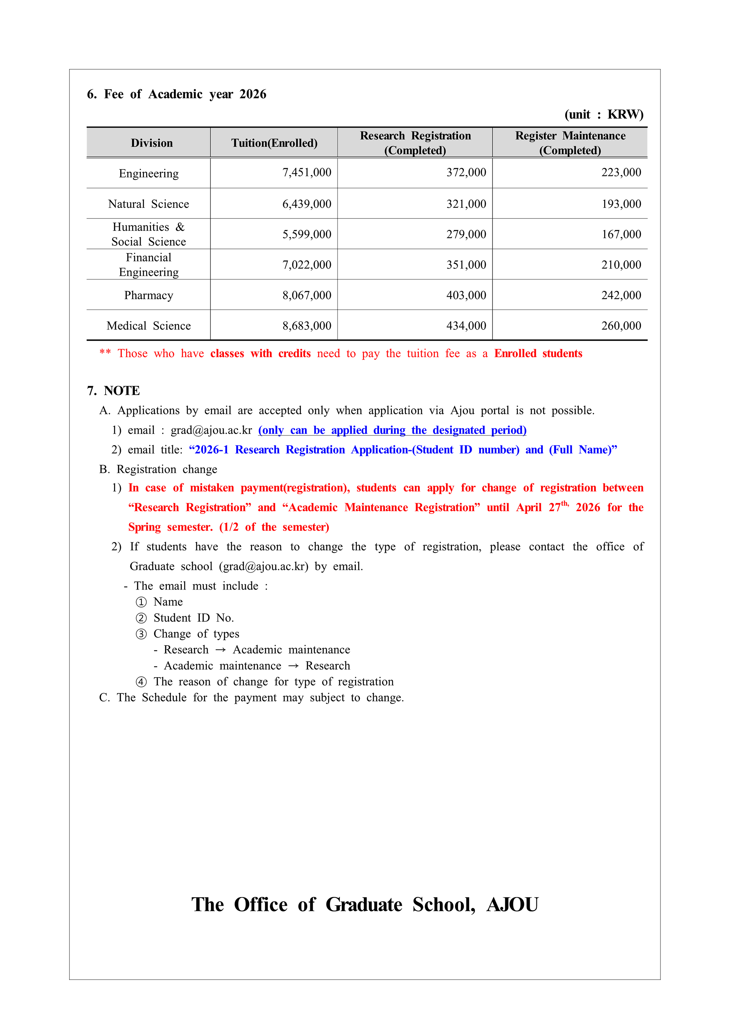 [Notice] Registration for Students who have completed all required courses for Spring, 2026
