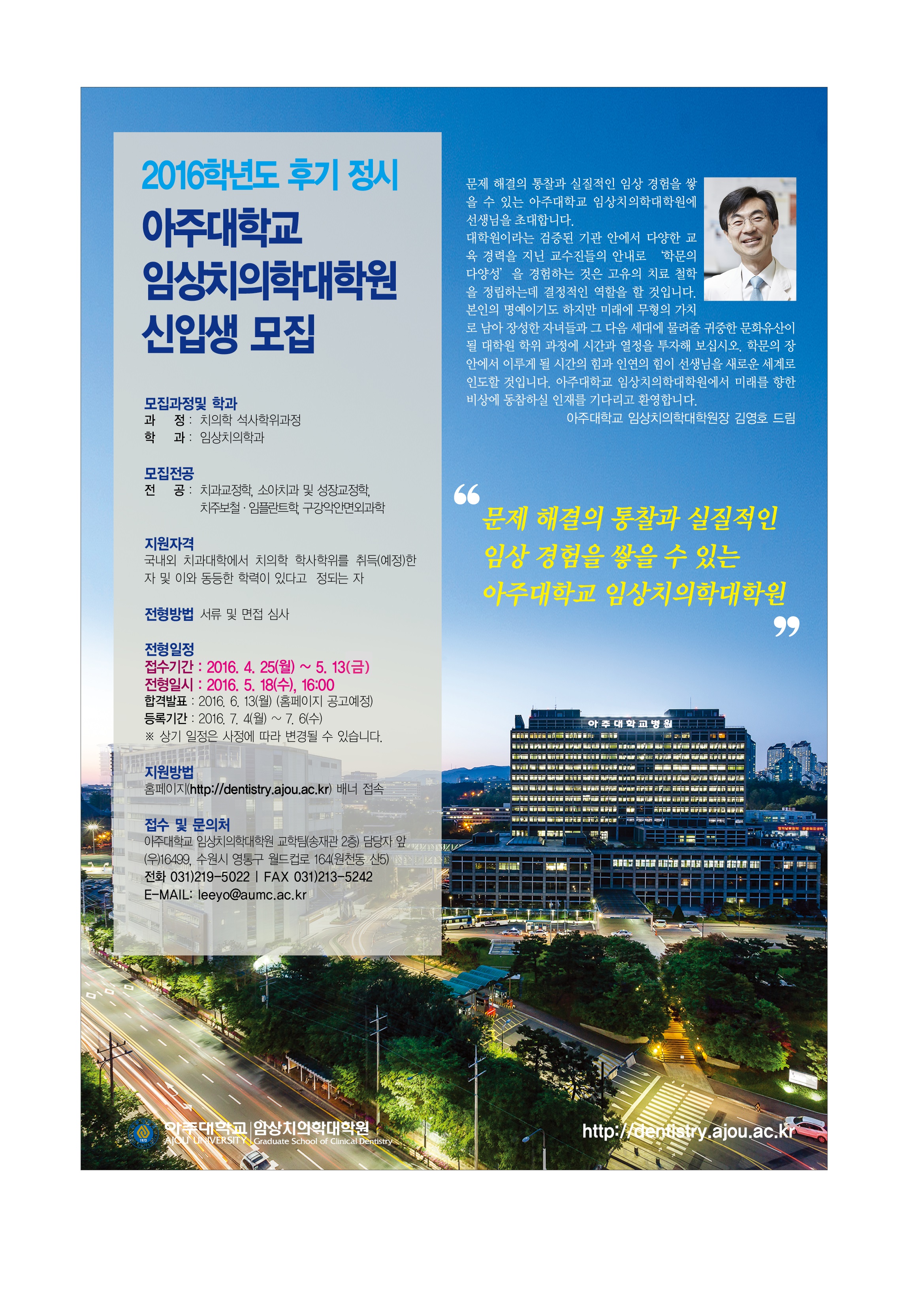 2016학년도 후기 정시 아주대학교 임상치의학대학원 신입생 모집