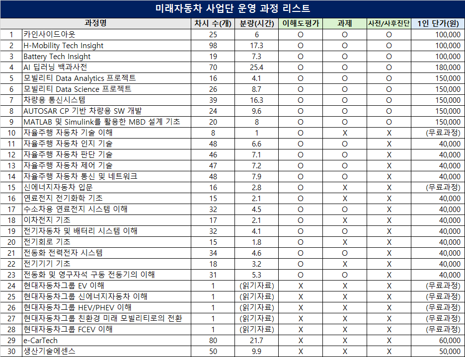 2. 교육 과정 목록(상세 설명은 첨부파일 참조)