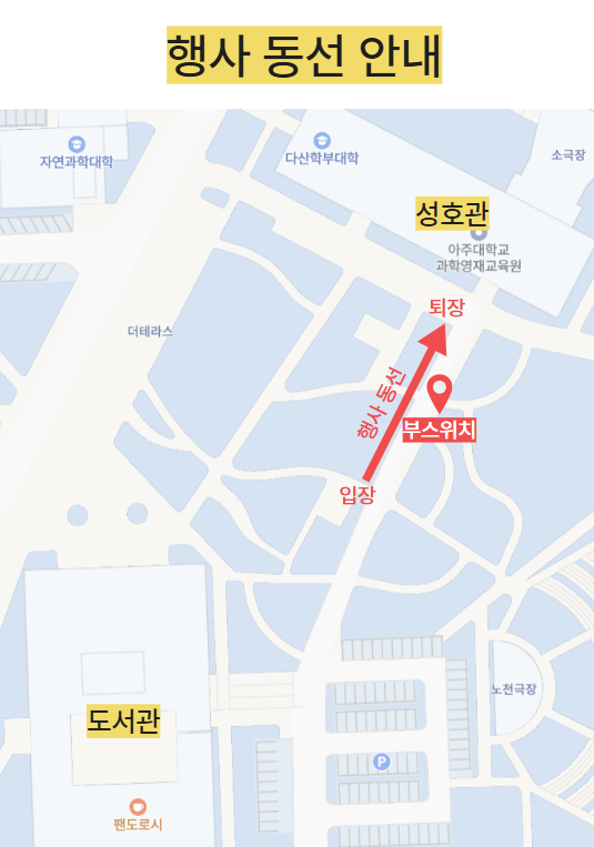 자세한 부스 위치 및 동선 안내는 하단 이미지를 참고해 주시면 감사드리겠습니다.