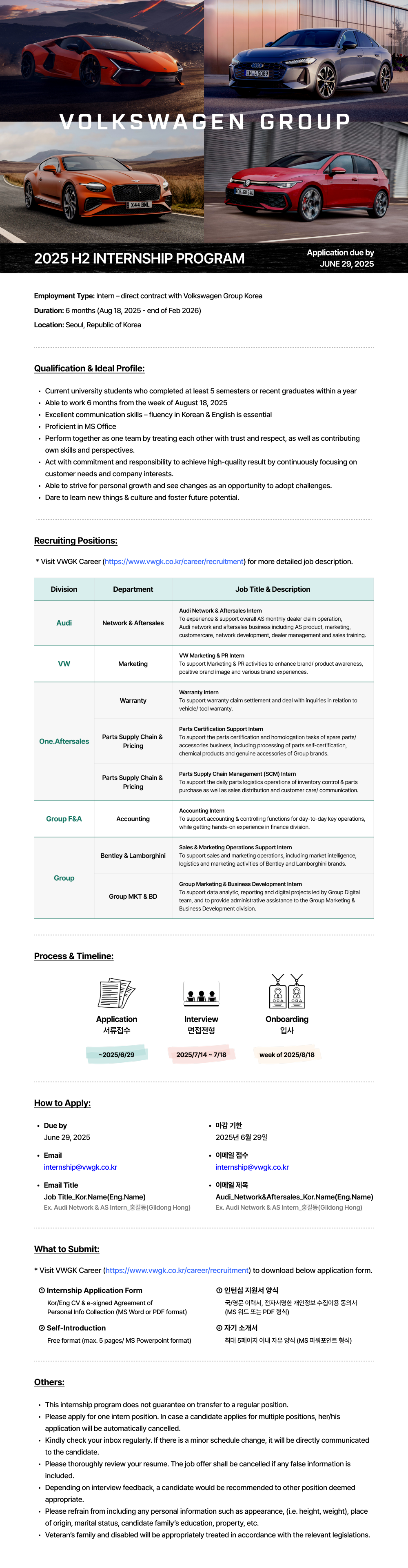 [폭스바겐그룹코리아] 2025 H2 INTERNSHIP PROGRAM(~6/29)