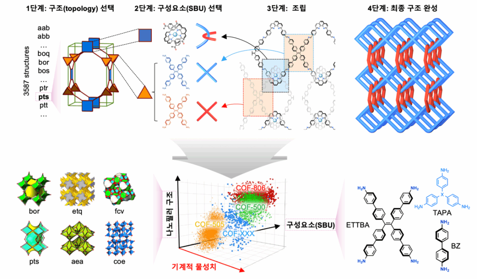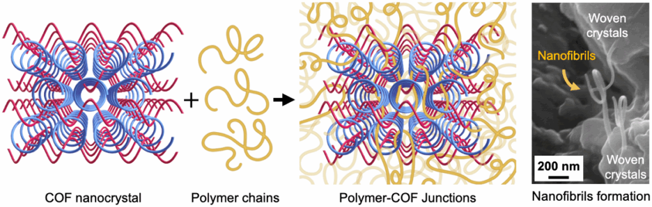 3D woven covalent organic frameworks (COFs) template polymer chains, forming entangled junctions that facilitate nanofibril formation under stress. In this study, we used various types of COFs as nanofillers and embedded them into a polymeric matrix to achieve mechanically reinforced nanocomposites, which can improve stiffness, strength, and toughness simultaneously—properties that are mutually exclusive.